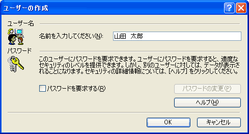 - そのユーザにパスワードを設定する必要がある場合は【パスワードを要求する】にチェックを入れ設定します。