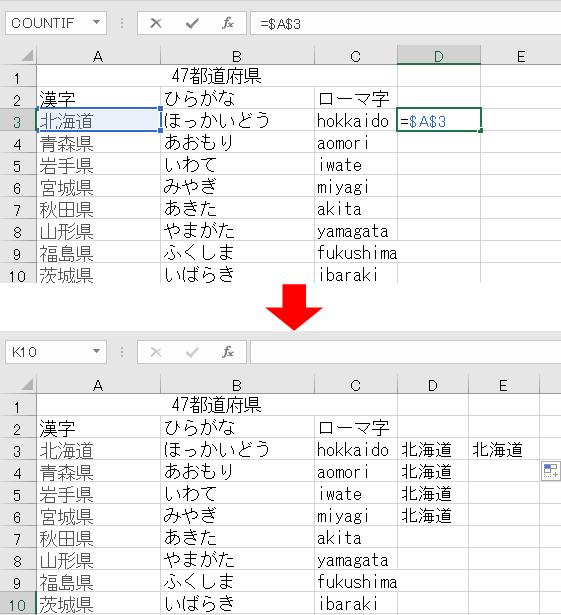 絶対参照 例 $A$3 ![]() 複合参照(絶対行参照) 例 A$3 ![]() 複合参照(絶対列参照)例 $A3