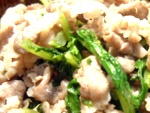 ![]() おかずは三清屋さんに頂いたお肉と大根葉炒めてみた。大根葉めっちゃおいしいですよね。 |