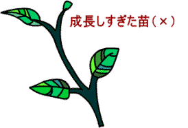 苗を選ぶ時は、緑色が濃くて葉が厚く、茎が太くて節の間が短い、全体的に見てしっかりとしたものを選びます。茎が細くてひょろ長く間延びしたようなものや、葉の厚みが無くて弱々しいもの、葉の色が薄いものは避けます。また、葉の裏や根元等も良く点検します。虫の卵が付いていないか、病気による斑点等が出ていないかにも注意します。苗は乾かないように気を付ければ、何日かは保存は出来ますが、なるべく植付けの直前に購入するようにしましょう。