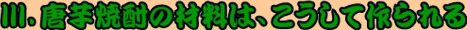 | ★唐芋焼酎は、こうして造られる | ★唐芋焼酎は、こうして飲む | ★唐芋焼酎に合う摘みは、こうして選ぶ | ★唐芋焼酎は、こうして活かす |