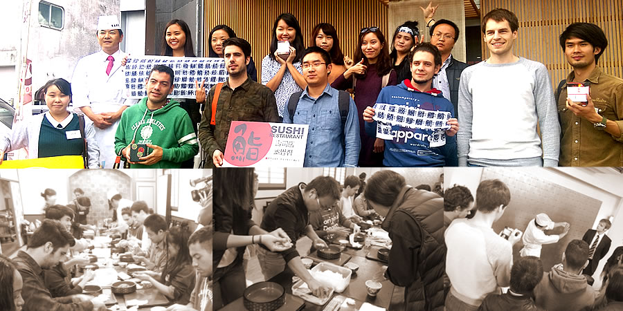 外国語のメニューやお寿司の歴史、食べ方などの紹介はもともとありました。ですから、留学生のみなさんの心に残るためには何をしたらいいだろうかと考えました。そこで思いついたのが、ただ握り寿司を体験するだけでなく、コンテスト形式にして、 上位入賞者のプレゼントとして榮樂寿司のロゴの入った「湯のみ」や、いろんな種類の魚が漢字で書かれた「手ぬぐい」を用意しました。