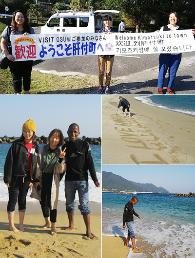 岸良海岸に到着すると肝付町観光協会のスタッフの方々が「ようこそ肝付町へ」と垂れ幕を持ってお出迎えをしてくれました!