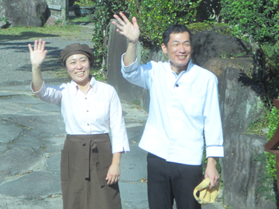 シェフ、奥さんとても素敵な笑顔での見送りを